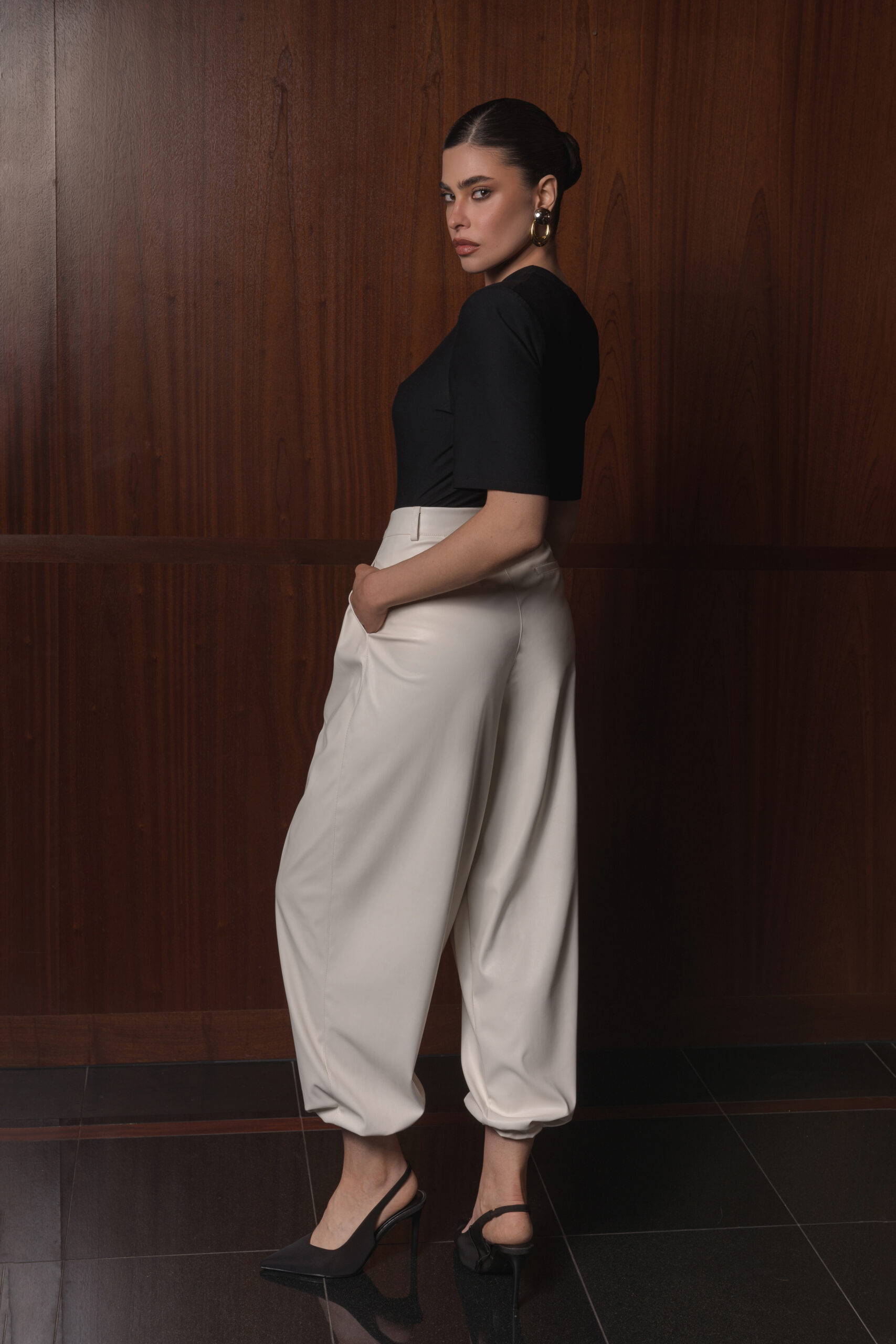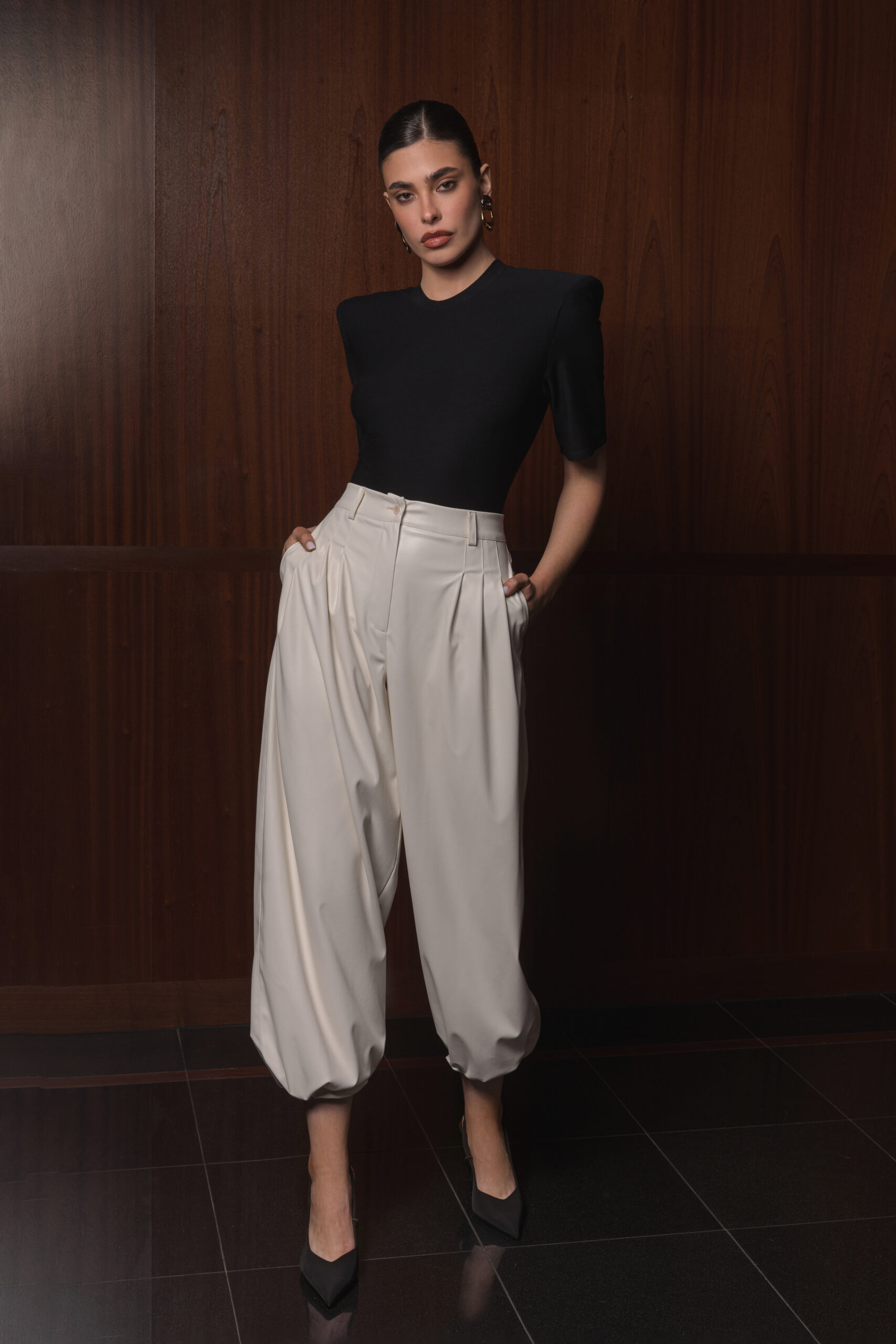 Spodnie balloon w kolorze ecru z wysokim stanem