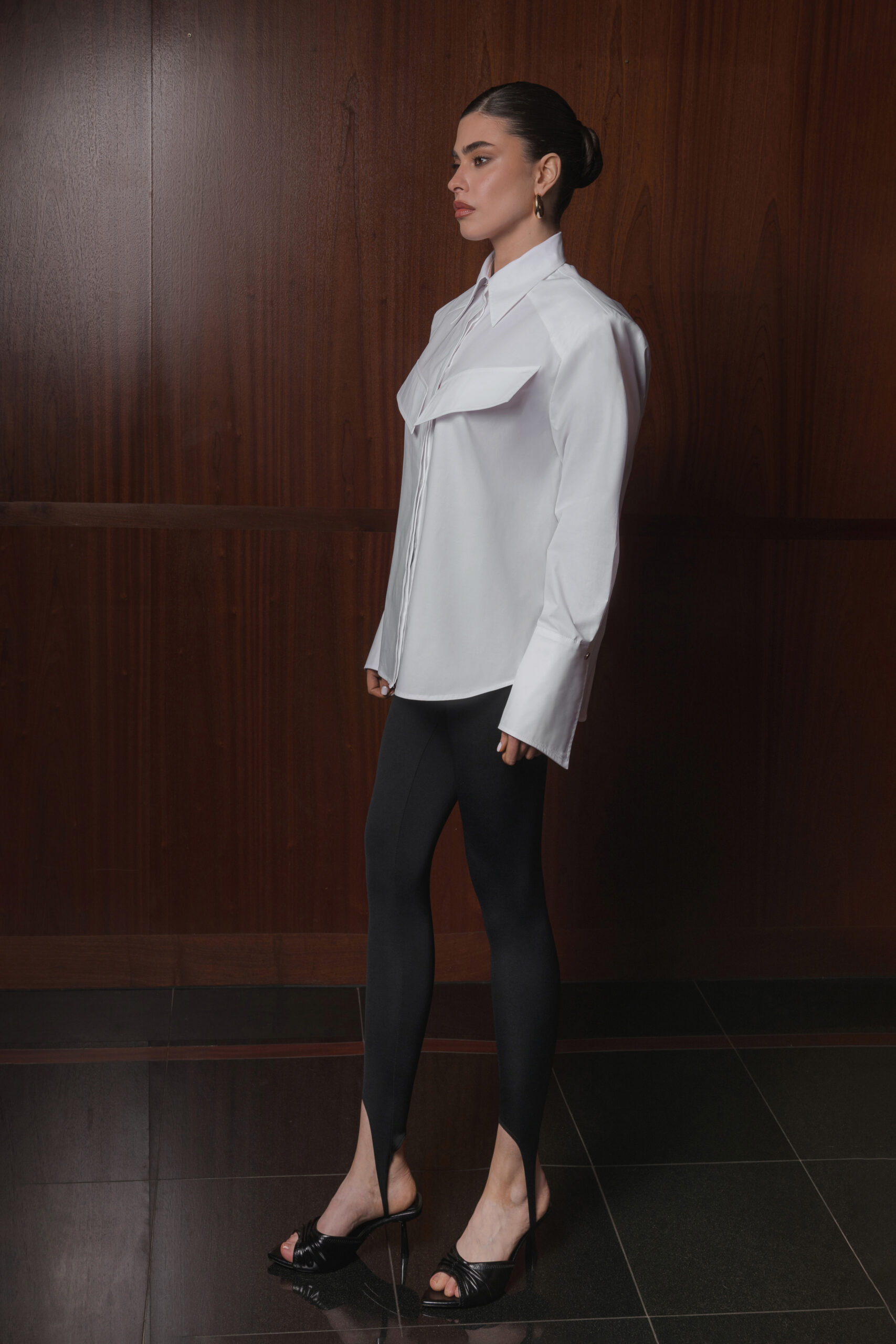 Stylowa biała koszula oversize, która łączy ponadczasową elegancję z nowoczesnym, swobodnym krojem. Luźny fason sprawia, że koszula wygląda bardzo modnie, a jednocześnie zapewnia wygodę noszenia przez cały dzień. Model wyróżnia się ozdobnymi złotymi guzikami, które nadają koszuli eleganckiego i luksusowego charakteru. Klasyczny kołnierz oraz patki podkreślają stylowy wygląd i dodają całości wyjątkowego charakteru. Koszula posiada również poduszki na ramionach, które pięknie podkreślają linię ramion i nadają sylwetce modny kształt. Dla większej wygody poduszki są odpinane, dzięki czemu można je łatwo zdjąć przed praniem lub nosić koszulę w bardziej klasycznej wersji.