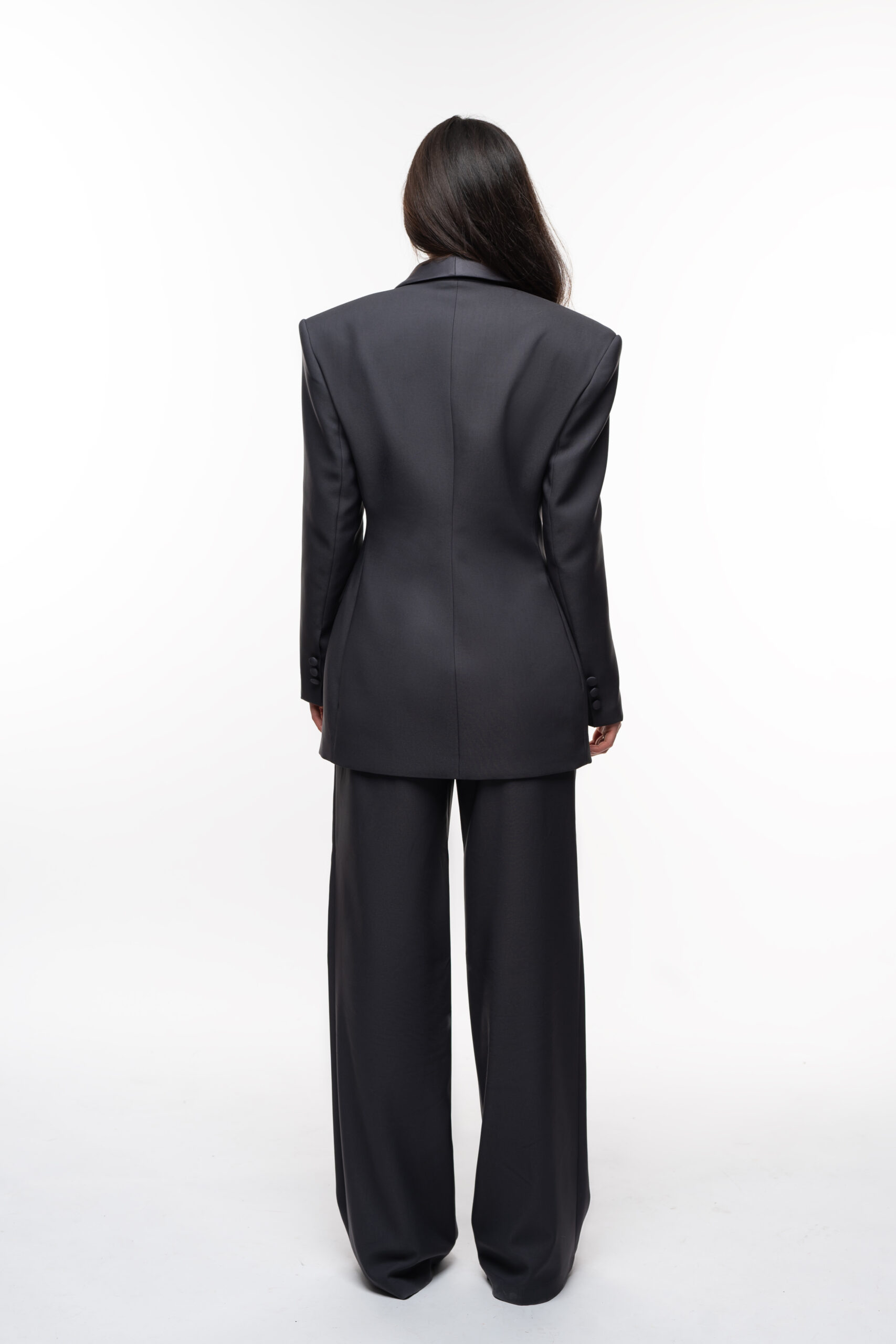 Błyszczące klapy to element zaczerpnięty prosto ze świata wielkiej mody i męskich smokingów, który nadaje marynarce luksusowego charakteru i sprawia, że wyróżnia się z tłumu. Grafit to kolor niezwykle wszechstronny, łatwy do łączenia z innymi barwami – od klasycznej czerni i bieli, po pastele czy intensywne neony. Wykonana z wysokiej jakości materiałów, z dbałością o precyzyjny krój, który pięknie modeluje sylwetkę i jest komfortowy w noszeniu. Noś marynarkę w połączeniu z kamizelką i spodniami z zakładkami.