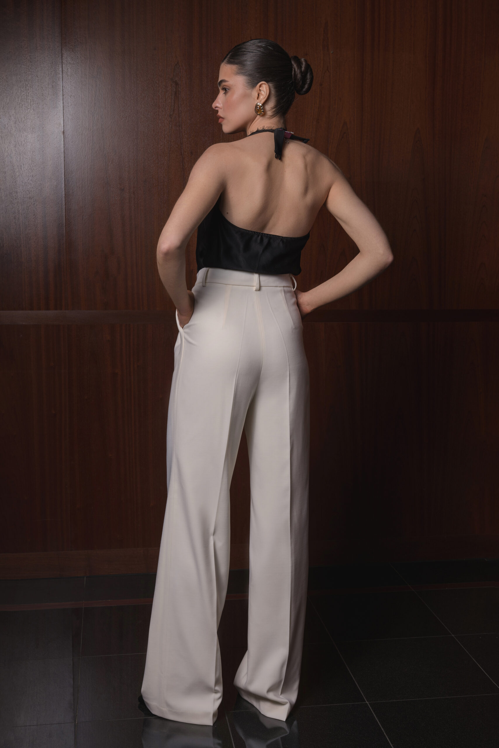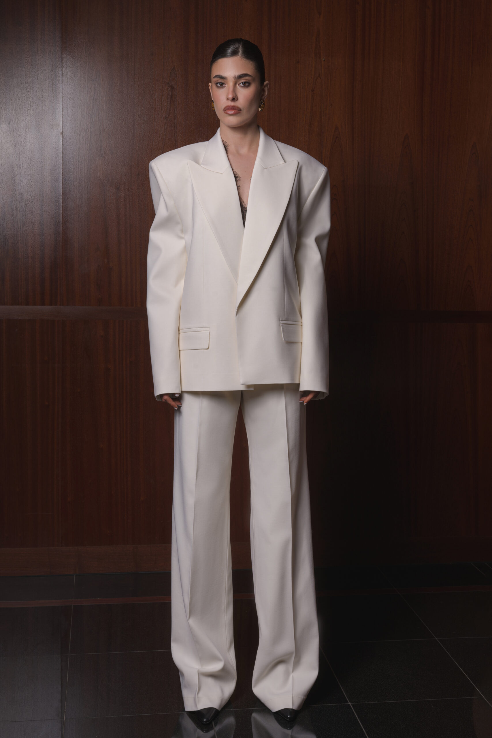 Spodnie noś w zestawie z oversize marynarką i topem z francuską koronką.