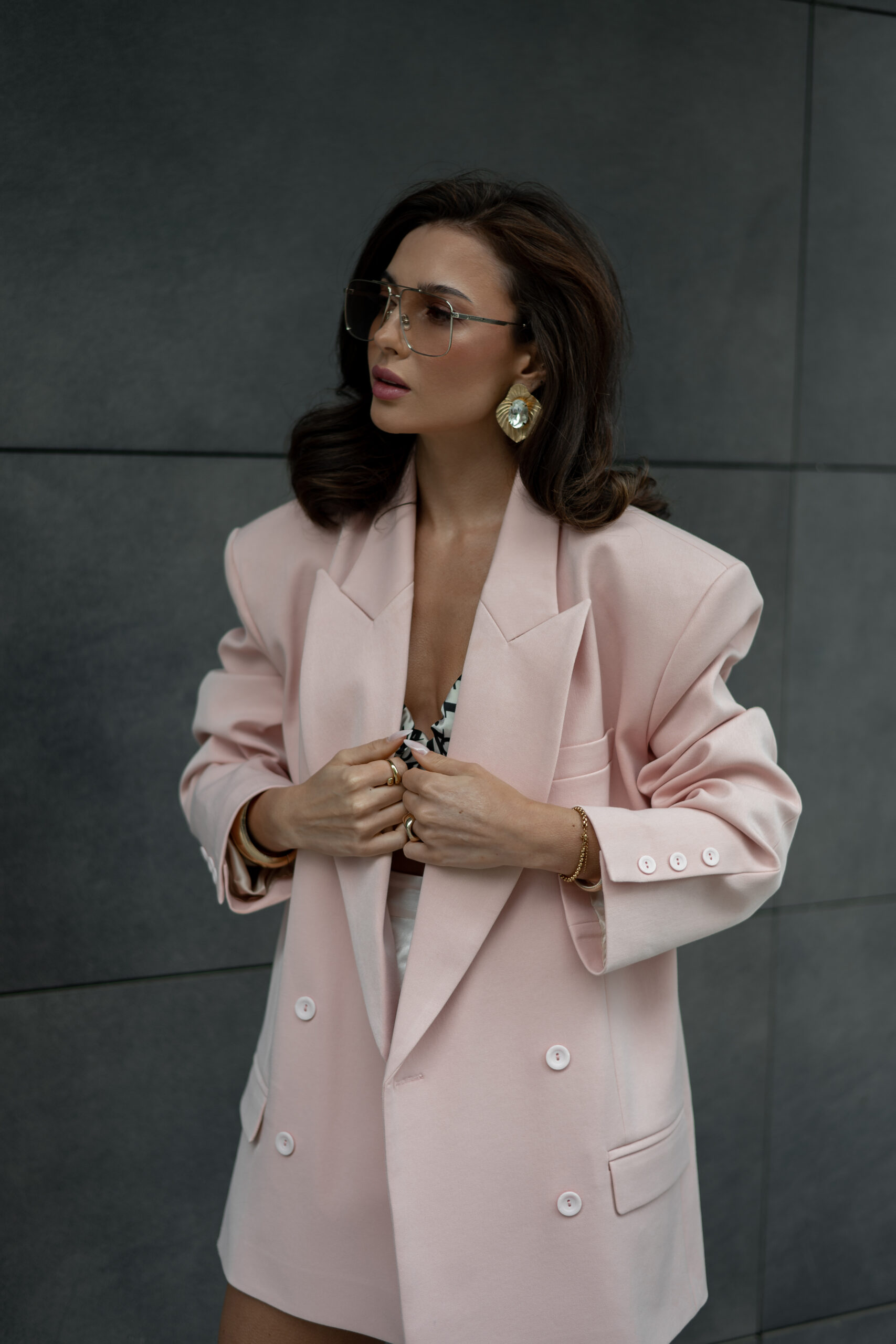 Klasyczna oversizowa marynarka Kate o pudełkowym kroju w kolorze pudrowym różu. Z klasycznymi detalami, takimi jak szerokie ramiona, guziki. Marynarka tworzy szykowny i nowoczesny look.